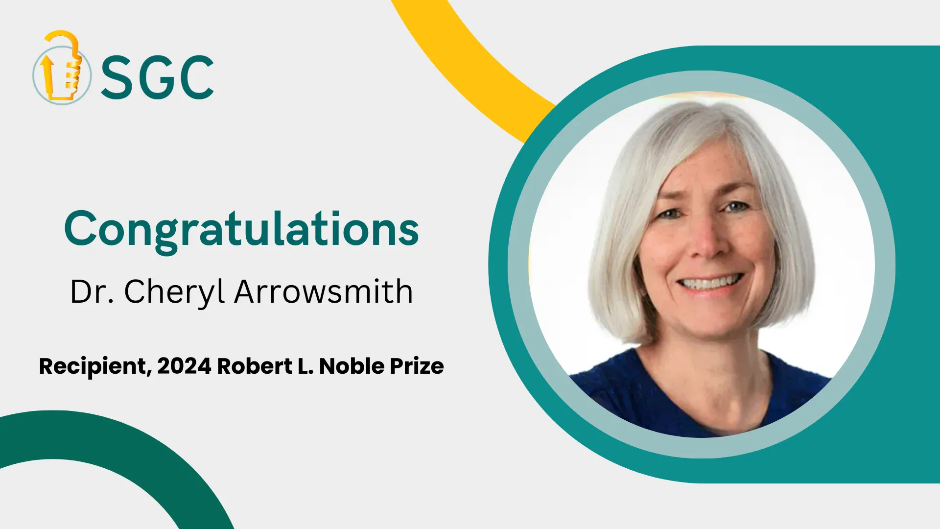 Dr. Cheryl Arrowsmith, Chief Scientist at SGC-Toronto, has been awarded the Robert L. Noble Prize by the Canadian Cancer Society in recognition of her significant contributions to biomedical cancer research.