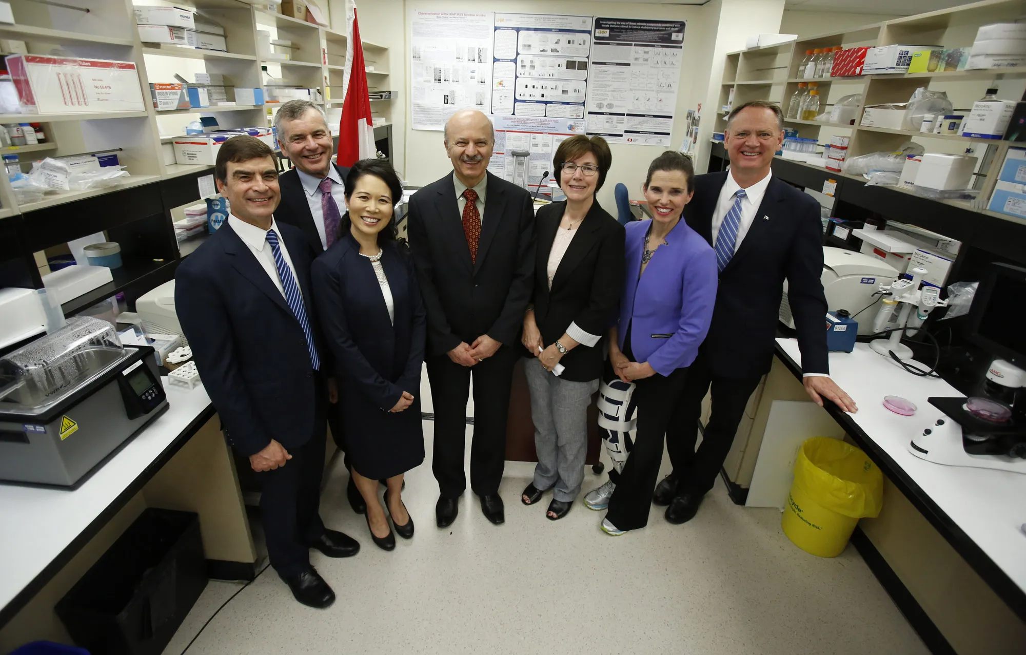 Left to right: Dr. Martin Osmond, CEO and Scientific Director of the CHEO Research Institute; Marc LePage, President and CEO, Genome Canada; Jennifer Chan, VP, Policy and External Affairs, Merck Canada; Hon. Reza Moridi, Ontario Minister of Research, Innovation and Science; Dr. Cheryl…