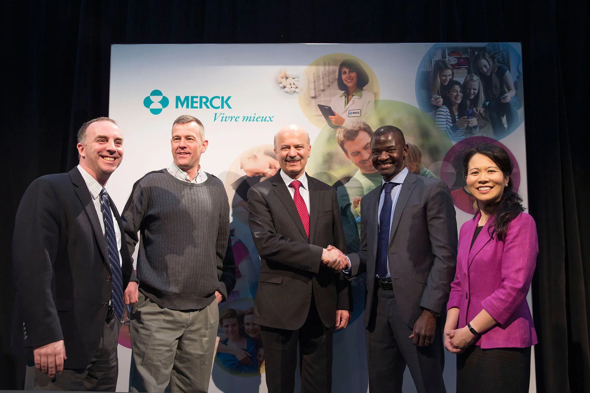 "This morning at MaRS Discovery District, Merck confirmed its commitment to research and innovation with a $7.5 million contribution to the Structural Genomics Consortium Toronto. (From left to right) Dr. Ronan O'Hagan, Dr. Aled Edwards, The Honourable Reza Moridi, Mr. Chirfi Guindo and Ms.…